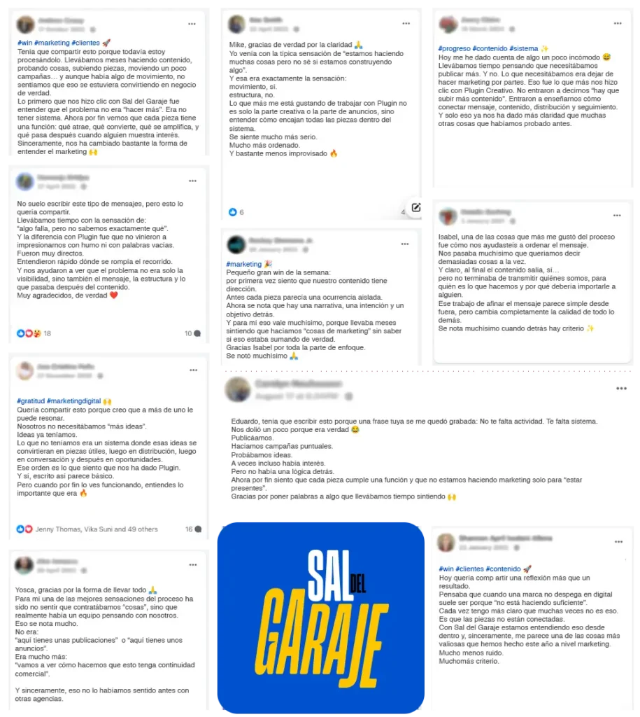 Sal del Garaje está diseñado como un sistema de crecimiento: conectamos contenido, performance creatives, paid media, automatización y seguimiento para que tus canales digitales no solo generen visibilidad, sino también conversación y captación.